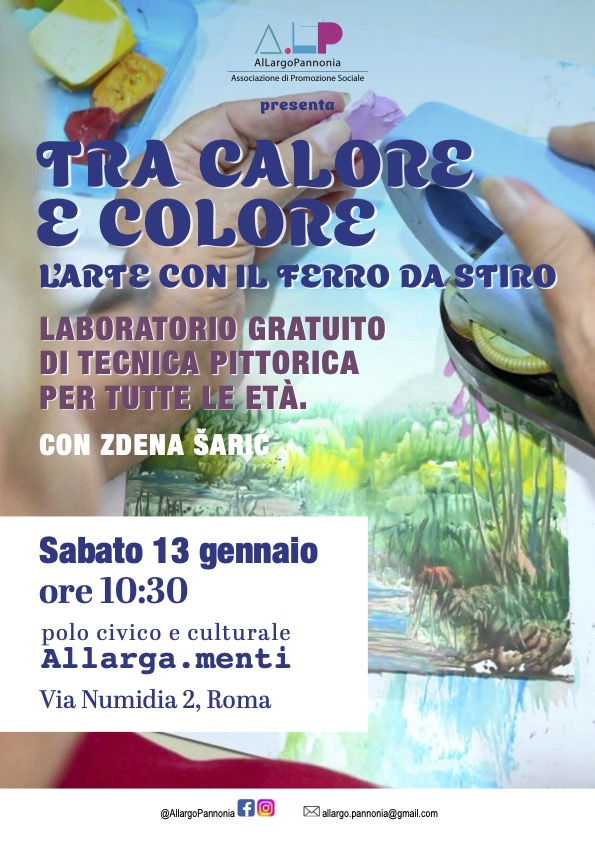 Il 13 gennaio, alle 10.30, ospiteremo invece l’artista bosnica Zdena Šaric per un laboratorio gratuito di tecnica pittorica per tutte le età. Usando ferro da stiro e cera si possono creare dipinti di forte impatto visivo in pochi secondi!