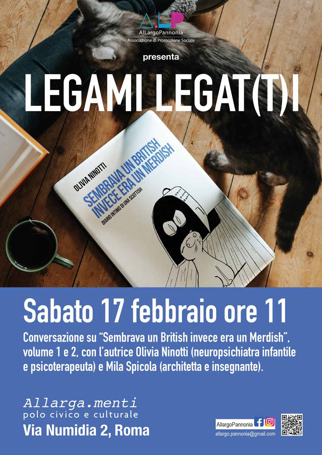 Sabato 17 febbraio, alle 11, Allarga.menti ospiterà la presentazione di due libri di Olivia Ninotti: Sembrava un british invece era un merdish, volume 1 e 2. Olivia è una neuropsichiatra infantile ed è la direttrice sanitaria di AIAS Milano. Vive nel capoluogo lombardo con marito, figli e gatti. E ha scritto due libri molto divertenti per raccontare le loro vicessitudini…