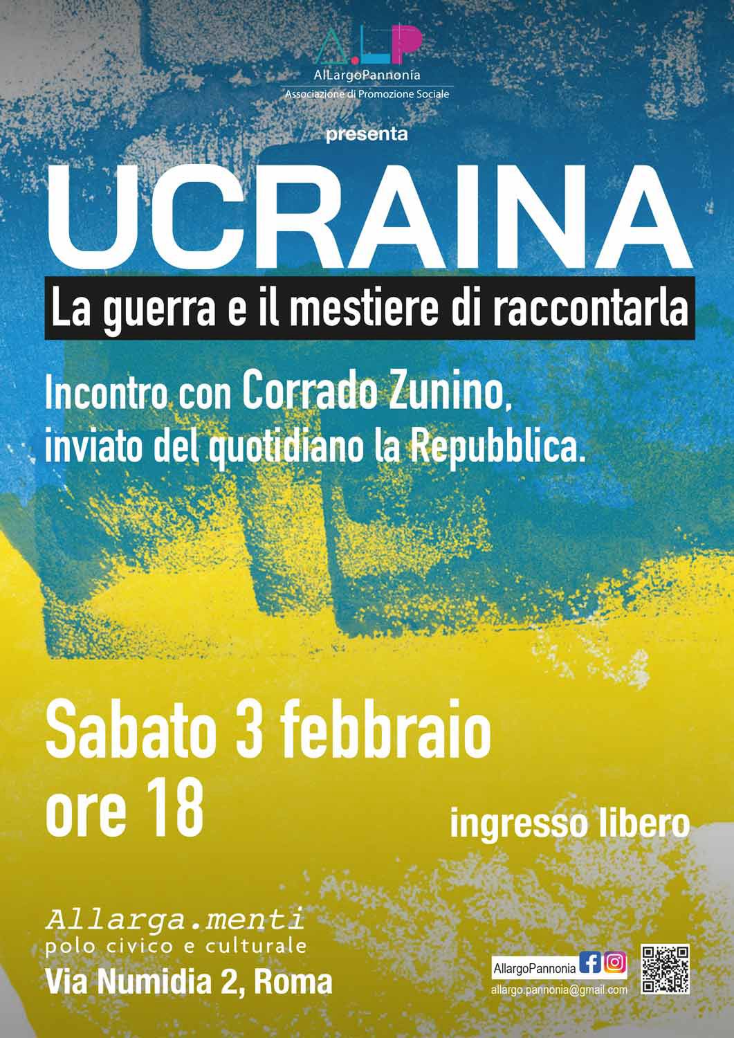 Sabato 3 febbraio, sempre ad Allarga.menti (via Numidia 2, Roma) incontriamo l’inviato del quotidiano la Repubblica, Corrado Zunino, per parlare della situazione in Ucraina dopo l’invasione da parte della Russia e anche del mestiere dei giornalisti nei conflitti. Zunino, 58 anni, è rimasto ferito nell’aprile scorso mentre si trovava a Kherson, a causa dell’attacco di un drone.…